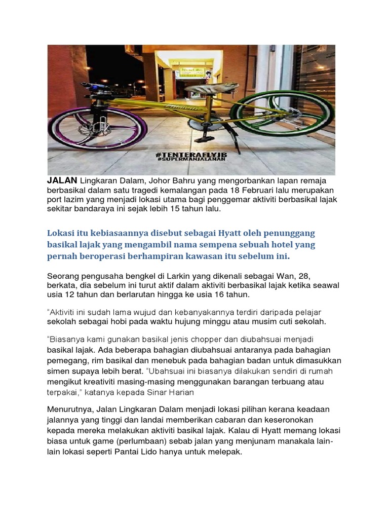 Perbezaan dengan motosikal seret hanya dalam enjin untuk basikal lumba lajak mereka masih menggunakan pedal biasa. Ada yang kata Sam Ke Ting bersalah dan ada yang kata mereka yang terkorban berbasikal lajak itu yang salah. Bernama Infografik Apa Itu Basikal Lajak Facebook Mesti Baca Bahaya Basikal Lajak Funtasticko Net Bahaya Basikal Lajak Bahaya Basikal Lajak Basikal Lajak Dan Sistem Terlajak Rosak Basikal Lajak Ibu Bapa Boleh Dikenakan Tindakan Kata Bukit Aman Ciri Ciri Basikal Lajak Youtube Kes.
